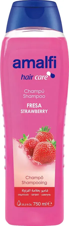 Шампунь с ароматом клубники предназначен для ежедневного использования. Проникает в структуру волоса, делает его ярким и мягким. Подходит для всех типов волос. Прошёл дерматологический тест. Приобретите для себя замечательный увлажняющий шампунь производства испанской косметической компании Amalfi, который эффективно позаботится о красоте и здоровье ваших волос. Шампунь отлично подойдет для частого применения, поможет вашим волосам всегда быть идеально очищенными, и вновь обрести природное сияние, эластичность и здоровый внешний вид. Продукт отличается особой формулой, обогащенной клубничным экстрактом, что делает шампунь незаменимым средством для восстановления тусклых, поврежденных, безжизненных волос. Благодаря высокому содержанию в клубнике полезных для красоты волос микроэлементов и витаминов, шампунь глубоко увлажняет клетки, способствует восстановлению и укреплению стержня каждого волоса, предотвращает сечение, ломкость, возвращает волосам ухоженный внешний вид, шелковистость и блеск. Данный продукт, безусловно, понравится вам после первого же применения, он подарит волосам силу, энергию, и поможет вам всегда наслаждаться их красотой.
