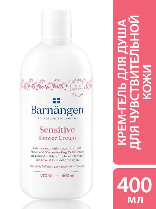 Серия Barnangen "Sensitive" непременно покорит обладательниц чувствительной кожи. Секрет эффективности – цветы бузины и "Холодный крем", способные обеспечить самый тщательный и щадящий уход, успокоить кожу, защитить ее от раздражений и сохранить мягкость. Деликатный гель для душа имеет консистенцию крема. Он не содержит агрессивных компонентов и бережно очищает кожу, оставляя лишь ощущение полного комфорта.