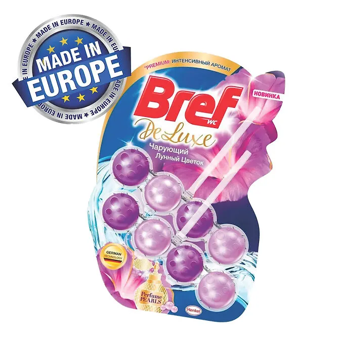- Средство Bref DeLuxe содержит парфюмерную композицию, которая обеспечивает элегантный освежающий аромат.