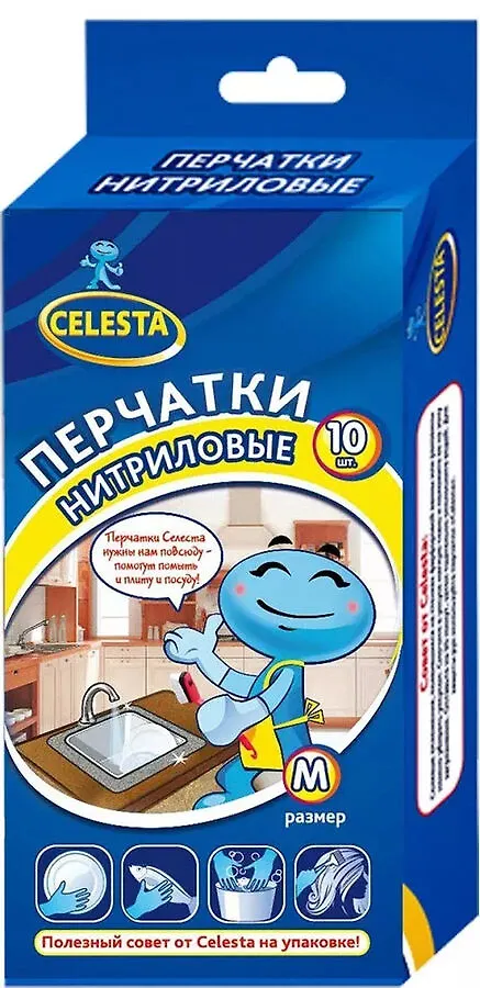Перчатки нитриловые Celesta - эластичный тонкий аксессуар, обеспечивающий высокую чувствительность. Они подходят для любого вида хозяйственных работ: мытья полов, посуды, чистки ванной или санузла, приготовления пищи. Одноразовые перчатки изготовлены из нитрила. Материал обладает повышенной прочностью и длительным сроком эксплуатации.