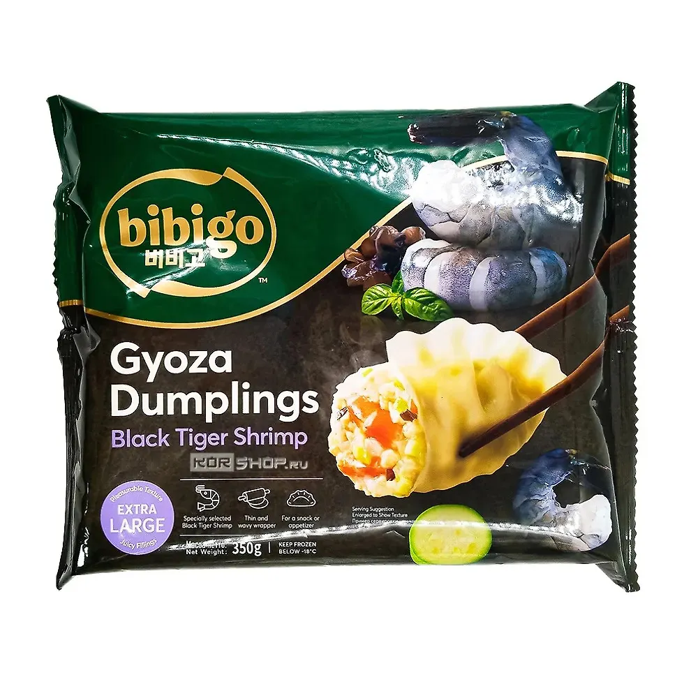 мука пшеничная, креветки тигровые черные (penaeus monodon), кабачки, свинина, мясо куриное, вода, гриб древесный, лук репчатый, загуститель Е1442, соус соевый, масло кунжутное, усилители вкуса и аромата (Е621, Е635), сахар, соль (антислеживающий агент Е536), рыбный соус, глютен пшеничный, регулятор кислотности Е500, масло соевое, перец черный молотый
