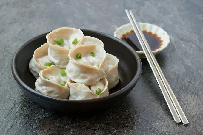 Состав: пшеничная мука, кальмары (16.75%), сурими (10.27%), вода, зеленый лук, рапсовое масло, лук порей, пекинская капуста, репчатый лук, мясо мидии (2.09%), чеснок, соевый белок, креветка (1.01%), соль, соевый соус (соевые бобы, мука, соль, вода), имбирь, приправы, кунжутное масло, сахар, усилитель вкуса(E635), морская капуста, усилитель вкуса (Е640), соевое масло, влагоудерживающий агент (Е420), эмульгаторы (E471, E322), зеленый перец, черный перец.