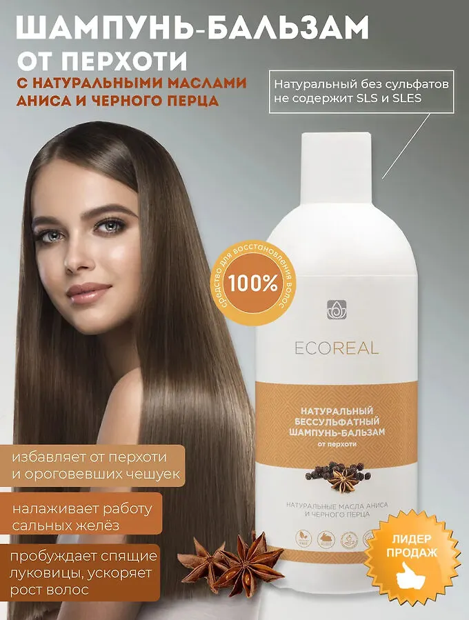 Благодаря своей жидкой структуре масло аниса легко и быстро проникает в подкожные слои локонов, поэтому эффект от его применения становится заметным уже через 2-3 процедуры. Шампунь-бальзам быстро налаживает работу сальных желёз, избавляя от перхоти и ороговевших чешуек. Чёрный перец оказывает местное раздражающее действие, провоцирует прилив крови, способствует усилению обменных процессов, тем самым повышая тонус кожи. Пробуждает спящие луковицы, ускоряет рост волос, подавляет рост грибков, вызывающих образование перхоти
