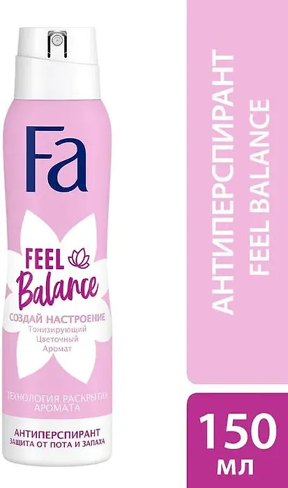 Антиперспирант-аэрозоль Fa Feel Balance с тонизирующим цветочным ароматом 150мл подарит вам заряд свежести и погрузит в мир новых впечатлений. Аэрозоль антиперспирант окутает вас тонизирующим цветочным ароматом и обеспечит до 48 часов защиты от пота и запаха. Формула с технологией раскрытия аромата обеспечивает ощущение длительной свежести и активирует аромат, когда это особенно необходимо. Дерматологически протестирован, бережная к коже формула без спирта, не оставляет пятен на одежде. Веган формула: не содержит ингредиентов животного происхождения.