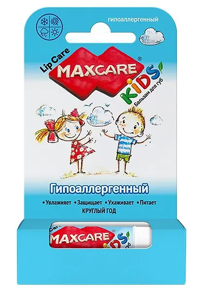 Бальзам Maxcare Kids «Гипоаллергенный» создан специально для ухода за особо чувствительной детской кожей губ.