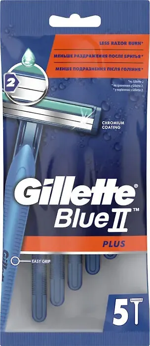 Бритва Gillette BlueII Plus оснащена двумя лезвиями с хромовым покрытием, которые долго остаются острыми. Смазывающая полоска обеспечивает мягкое скольжение бритвы. Удобная ручка бритвы позволяет контролировать каждое движение.