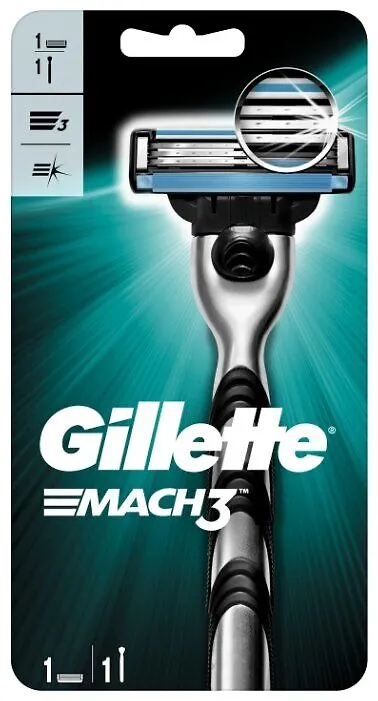 Бритвенный станок Gillette Mach 3, разработанный специально для мужчин, обеспечивает гладкое удаление волос без раздражения. Близко расположенные друг к другу лезвия из нержавеющей стали не натягивают кожу. Мужские бритвы Gillette Mach3 оснащены лезвиями прочнее, чем сталь, которые дольше сохраняют остроту (по сравнению с Sensor3). Более острые лезвия (первые 2 лезвия по сравнению с Sensor3) рассчитаны на 15 процедур комфортного бритья.