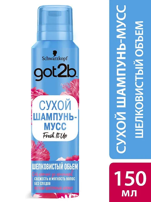 Нет времени помыть голову? Освежись в два счета! Сухой шампунь-мусс Got2b by Schwarzkopf Fresh It Up! Шелковистый Объем очистит волосы без воды и придаст им свежий вид.