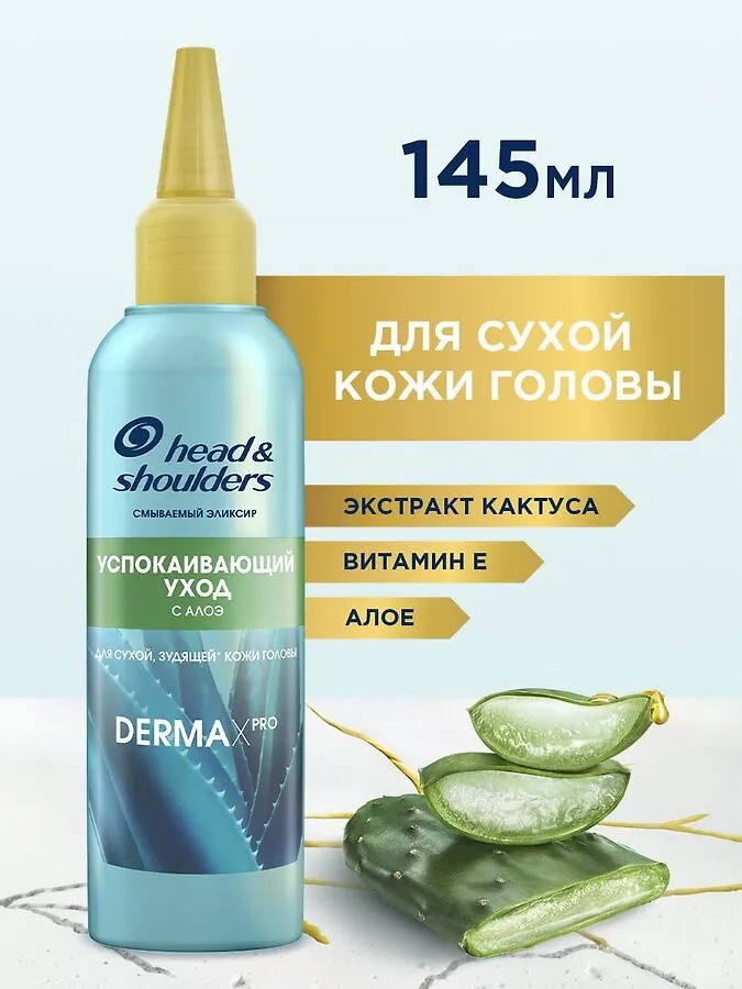 Революция в уходе за кожей головы! Экспертный трехступенчатый уход для питания сухой кожи головы и волос от Head & Shoulders (Хед энд Шолдерс) - коллекция DERMA X PRO. Успокаивающий смываемый эликсир для сухой и зудящей кожи головы DERMA X PRO от Head & Shoulders питает и восстанавливает кожу головы и корни волос, устраняя сухость и перхоть*.Формула эликсира содержит ухаживающие и увлажняющие ингредиенты для ухода за кожей головы и волосами: активное алоэ и витамин Е. Благодаря входящему в состав клинически проверенному активному компоненту Пироктону оламина эликсир эффективно борется с перхотью*.Для достижения максимального эффекта увлажнения на 72 часа используйте совместно с шампунем (шаг 1) и бальзамом-ополаскивателем (шаг 2) из коллекции DERMA X PRO.*видимую перхоть, при регулярном