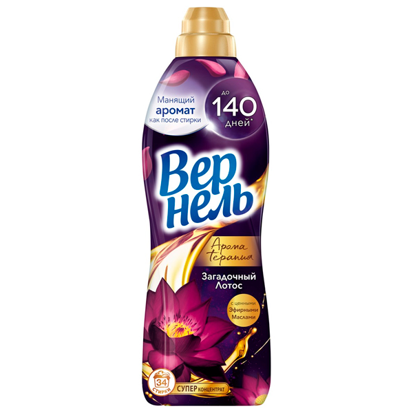 Концентрированный кондиционер для белья Вернель Ароматерапия Загадочный лотос подарит Вашему белью не только невероятную мягкость, но и магический аромат лотоса. Благодаря специальным аромакапсулам кондиционер для стирки Вернель позволит наслаждаться интенсивным ароматом до 140 дней.