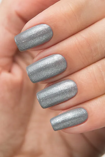 База топа прозрачная. В неё находится серебристый шиммер с голубым отливом.