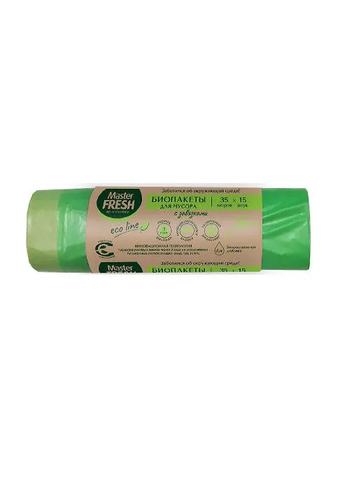 Master FRESH БИО пакеты для мусора с завязками 35л 15шт биоразлагаемые (салатовые)
