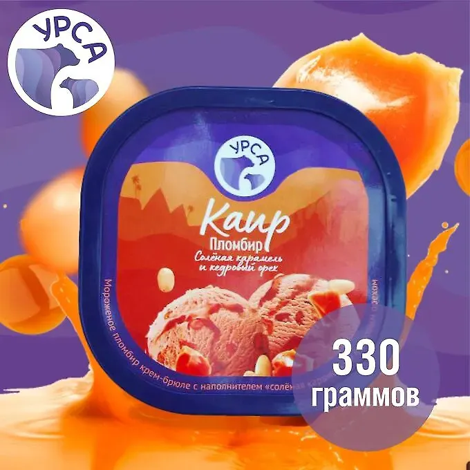 Мороженое «Каир: соленая карамель и орех». Идеальное сочетание пломбира крем-брюле (жирность 12%) и соуса из соленой карамели, дополненное кедровыми орешками. Каир – это фирменный насыщенный пломбир крем-брюле с нотками топлёного молока. Притягательная мягкая солёная карамель, приготовленная по особому рецепту прямо на фабрике, и много ароматных дальневосточных кедровых орешков, обжаренных на собственной производственной линии до золотистого цвета. Ингредиенты мороженого создают оригинальную комбинацию вкуса и аромата, отсылая нас к текстуре восточных сладостей Каира.