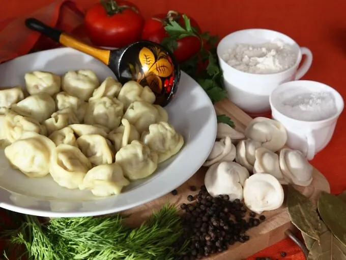 Пельмени, запечённые в сметанно-томатном соусе