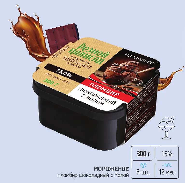Пломбир "Резной палисад" 300гр шоколадной с колой