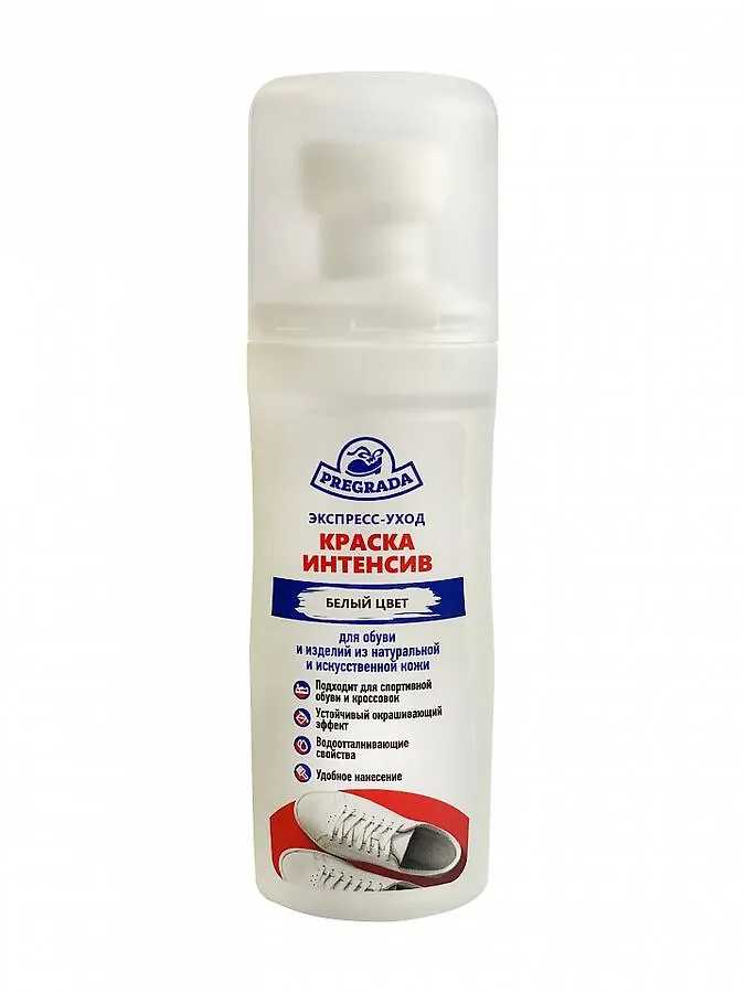 Полимерныи флакон 75 мл с губкои-аппликатором. - интенсивныи белыи цвет. - предназначен для подкраски и защиты изделии из гладкои натуральнои и искусственнои кожи, за исключением замши, нубука, велюра. - подходит для спортивнои обуви и кроссовок. Обладает водоотталкивающими своиствами. - не допускает замораживания.
