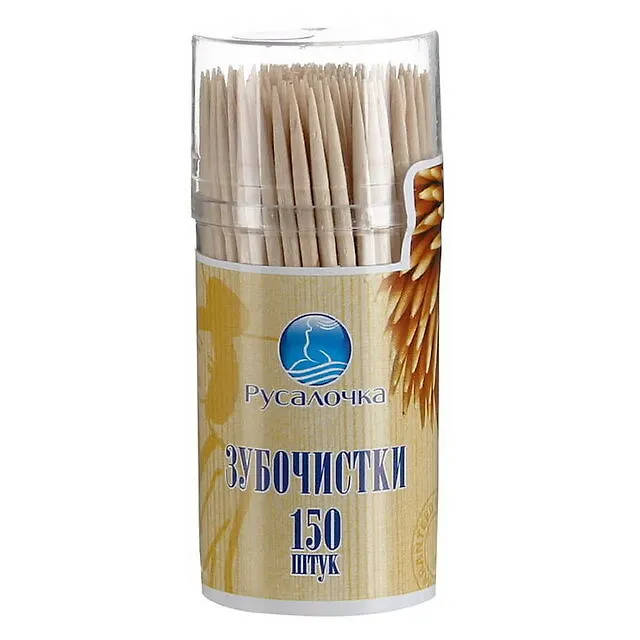 Зубочистки являются самыми древними представителями средств межзубной гигиены. Продукт под торговой маркой «Русалочка» изготовлен из мягких пород деревьев и представляет собой заостренные с двух сторон палочки с круглым сечением.