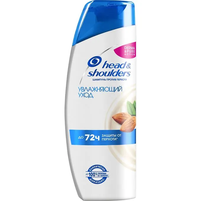 Шампунь против перхоти Увлажняющий Уход с миндальным молоком очищает волосы и глубоко увлажняет сухую кожу головы. Высокоэффективная формула Derma&Pure борется с зудом, жирной и сухой кожей головы, предотвращая появление перхоти. Шампунь Увлажняющий Уход прекрасно увлажняет волосы и кожу головы, обеспечивая до 100% свободы от перхоти