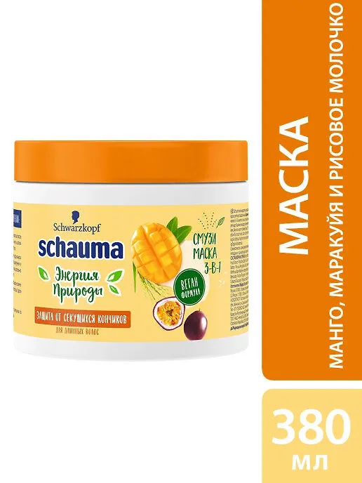 Маска Schauma Смузи Энергия Природы 3 в 1 с экстрактами манго, маракуйи и рисовым молочком поможет в решении одной из самых распространенных проблем обладательниц длинных волос – секущихся кончиков. Средство бережно восстанавливает структуру волоса, а свежий аромат тропических фруктов делает процесс ухода за волосами еще более приятным.