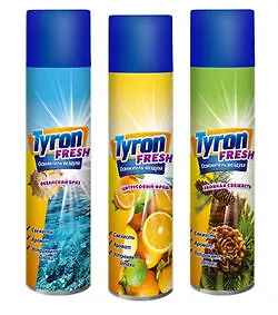 Эффективно устраняет неприятные запахи. Классические ароматы освежителей воздуха Tyron устраняют неприятные запахи, оставляя легкий шлейф свежести. Предназначен для устранения неприятных запахов и придания легких ароматов жилым помещениям, ванным и туалетным комнатам, салонам автомобилей