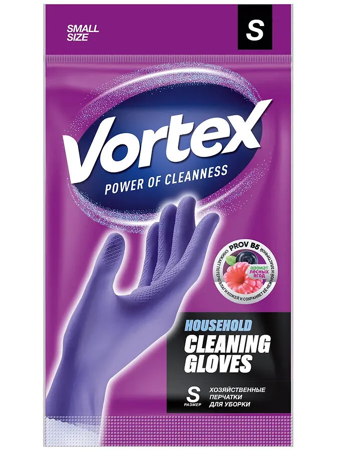 VORTEX Перчатки латексные универсальные с провитамином и ароматом лесных ягод для уборки, фиолетовые, 1 пара
