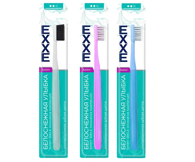 Зубная щетка ЕХХЕ средней жесткости. Эксклюзивная эргономичная форма ручки в сочетании со специально разработанной формой головки и щетинок помогает сохранить натуральную белизну зубов и обладает отличным полирующим эффектом.